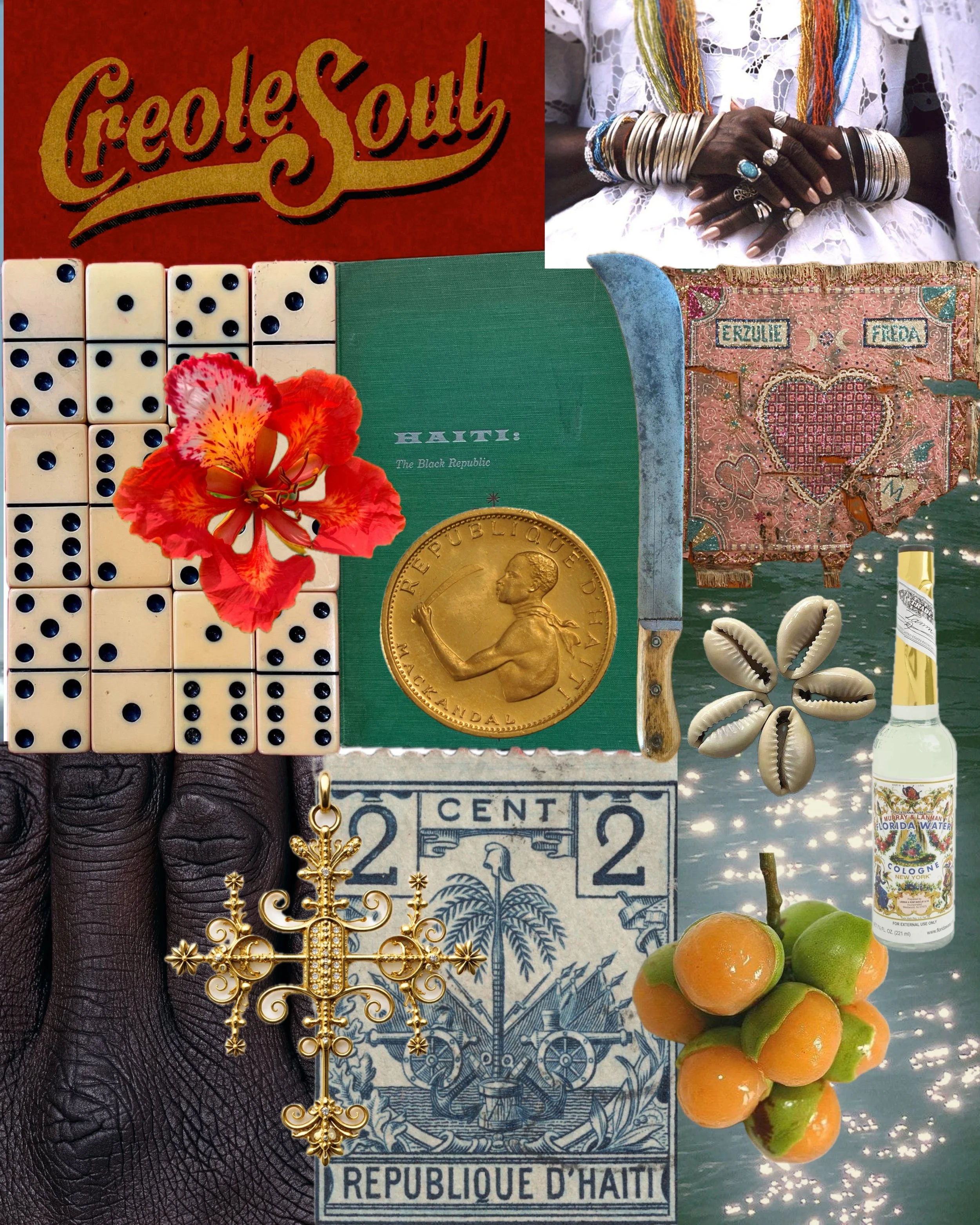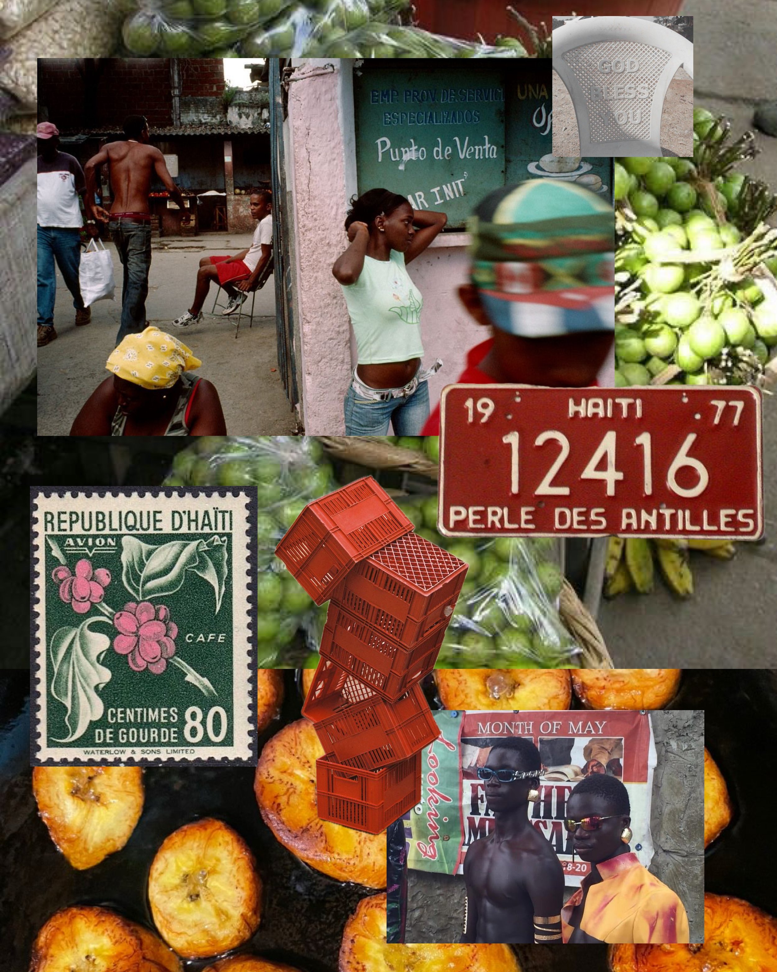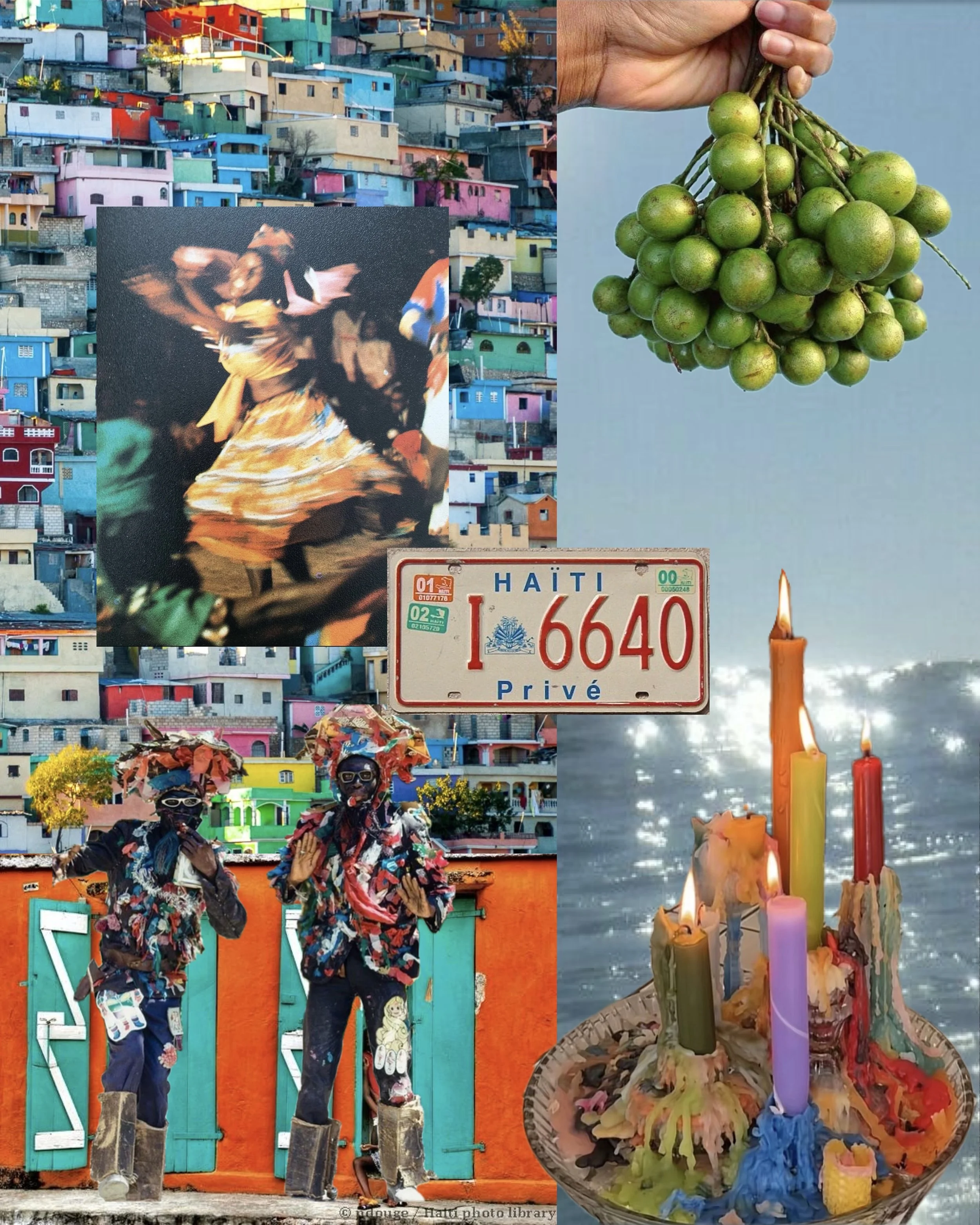 A gathering of object and ritual. These works hold Haiti in its exuberance: colourful, musical, abundant, naked, blooming. Re-Souvenirs D'Haïti prints.